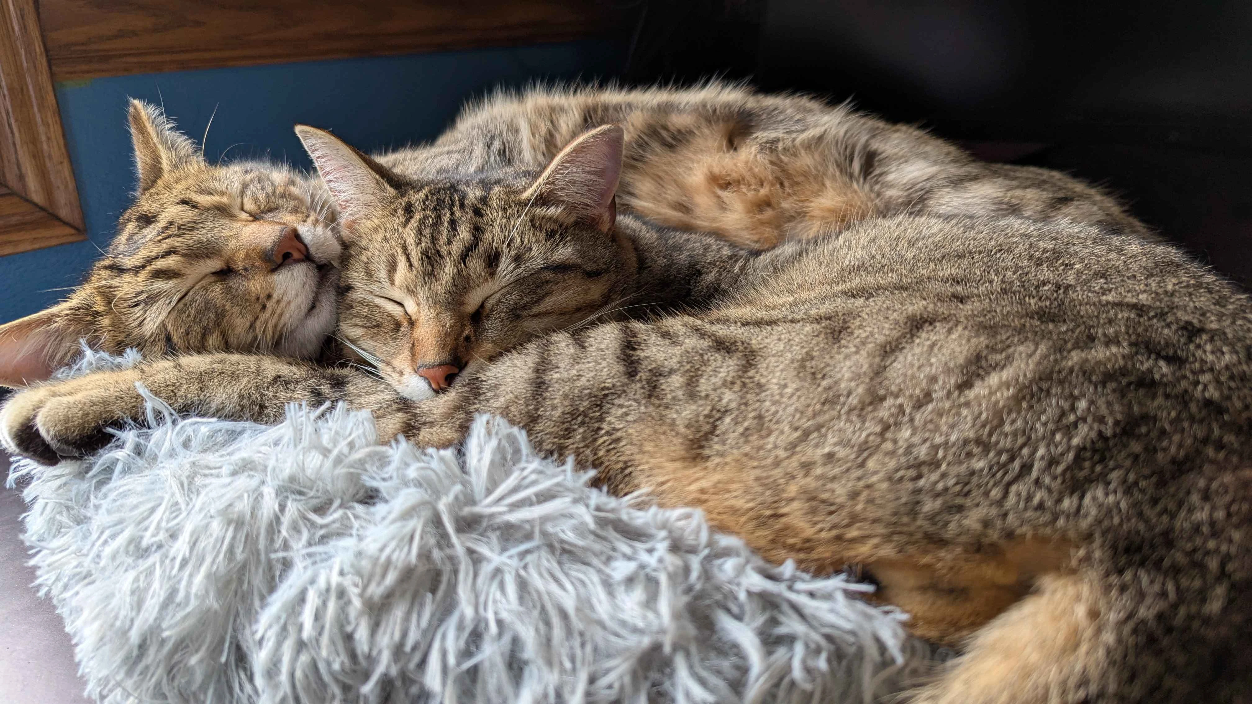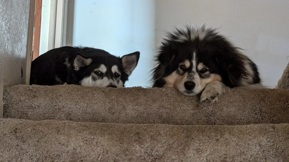 they're all pretty young, except skye the cat (not pictured) who is 12. but duke and dilla are only like 4, and the kitties are like... 2?